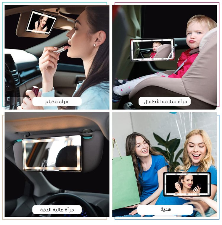 【شحنة واحدة تدوم لمدة عام واحد】مرآة مكياج للسيارة مزودة بشاشة لمس LED